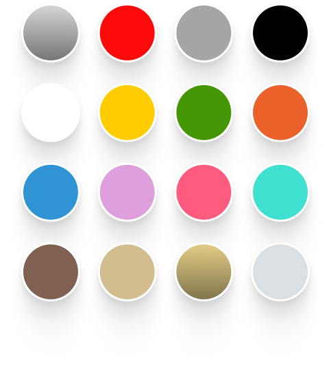 Barvy našich modelů standardně dělíme do 16 barevných skupin (stříbrná, červená, šedá, černá, bílá, žlutá, zelená, oranžová, modrá, fialová, růžová, tyrkysová, hnědá, béžová, pokovená a zvláštní). Každá jednotlivá skupina obsahuje další příbuzné barevné odstíny*.